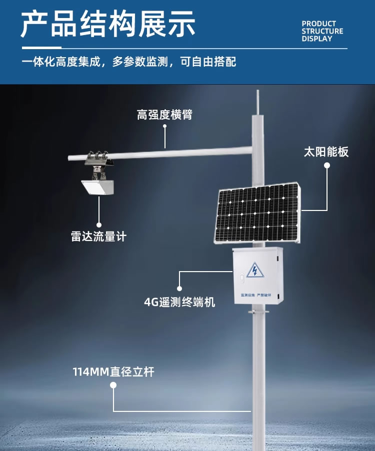 自然河道雷達(dá)流量監(jiān)測(cè)系統(tǒng),集數(shù)據(jù)采集、存儲(chǔ)、傳輸和管理于一體,由雷達(dá)流量計(jì)、數(shù)據(jù)采集儀、4G數(shù)據(jù)傳輸終端、太陽(yáng)能供電組件、立桿支架和云軟件平臺(tái)組成。系統(tǒng)實(shí)時(shí)監(jiān)測(cè)河道水文參數(shù),對(duì)關(guān)注水環(huán)境的安全問(wèn)題都有重要的幫助作用。